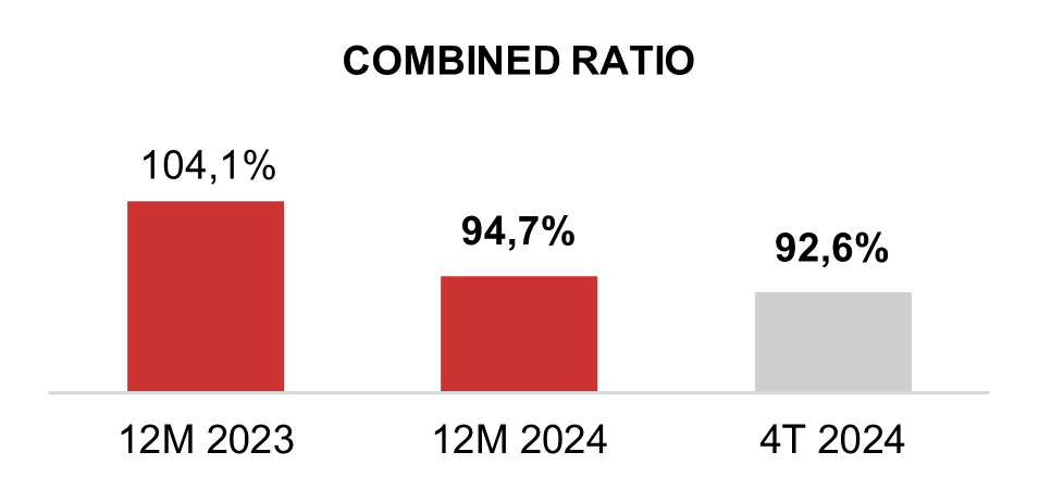 - The combined ratio stood at 94.7% at the end of the year, 9.4 percentage points better than in 2023 due to the reduction in claims costs and greater operational efficiency.