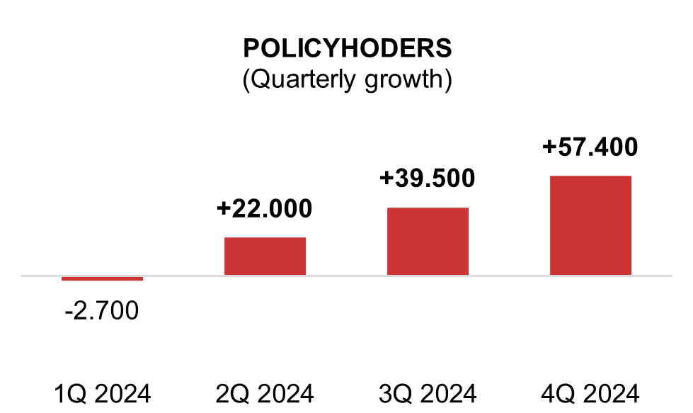 - The customer portfolio grew by 3.5% to 3.4 million policyholders, representing an increase of 116,200 customers for the year.