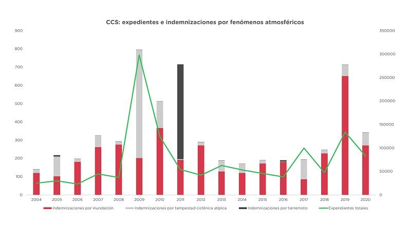 El CCS actúa en caso de inundaciones provocadas por la lluvia, el deshielo, los lagos, el desbordamiento de ríos y rías y embates del mar. En el caso de destrozos provocados por el viento, este debe haber superado los 120km/h o considerarse un tornado, independientemente de su fuerza. En cambio, los desperfectos provocados por el granizo, la nieve y las heladas no son cubiertos por este organismo, que sí actúa en caso de terremotos, maremotos y daños causados por una erupción volcánica.