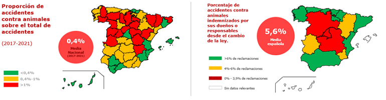 En cuanto a su localización geográfica, Soria (9%) es la provincia española con mayor proporción de accidentes contra animales, seguida de Teruel (4,4%) y Huesca (4%). En el lado opuesto, se sitúan las provincias de Santa Cruz de Tenerife, Las Palmas y Baleares, todas insulares.