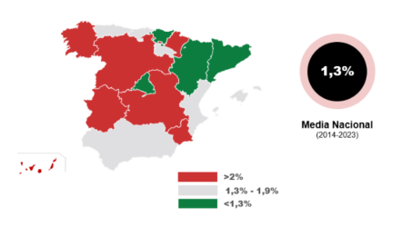 En el lado contrario se encuentran la Comunidad de Madrid (0,7%), Cataluña (0,7%) y Aragón (1,1%).