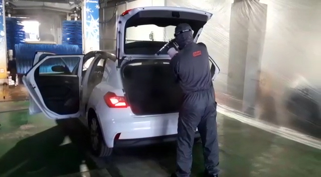 • The disinfection process involves spraying with virucides, a cutting-edge treatment that will be applied to the interior trim, fabrics and the surfaces usually touched when working with vehicles.
