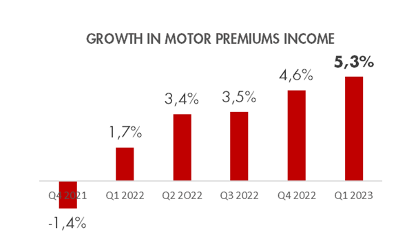- The company's turnover in Motor increased by 5.3%, tripling the growth rate for the first three months of last year and 0.6 p.p. more than the sector as a whole. The Group has seen five quarters of accelerated growth in its main line of business.