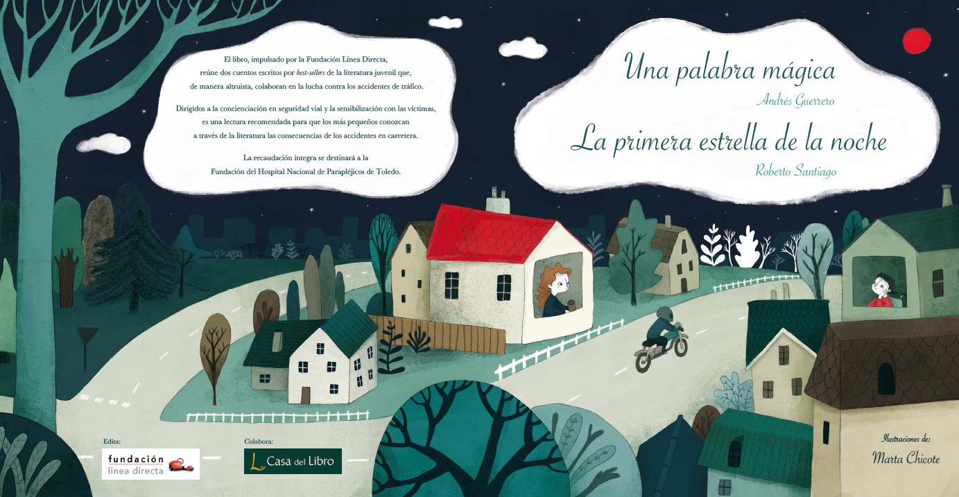 The book contains two short stories: 'Una palabra mágica' (A Magic Word), by Andrés Guerrero, and 'La primera estrella de la noche' (The First Star of the Night), by Roberto Santiago. Both are prestigious and highly renowned writers who specialise in children's literature: Roberto Santiago is the author of the best-selling collection called ‘Los Futbolísimos’ and has won the Barco de Vapor and Edebé awards and Andrés Guerrero, who won the SM Gran Angular Award 2019 for ‘Blanco de Tigre’ (Tiger White). The book was illustrated by Marta Chicote, an experienced illustrator who has worked on books such as ‘Fonchito y la luna’ (Fonchito and the Moon), by Mario Vargas Llosa.